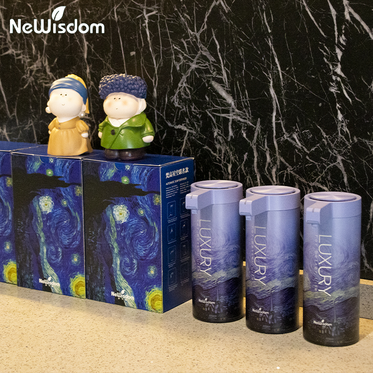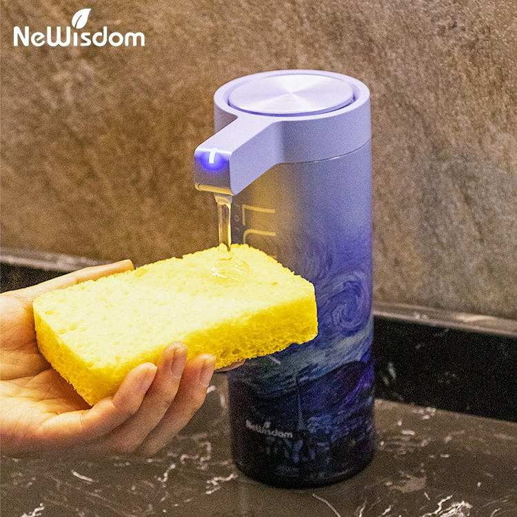 NeWisdom Touch-Free Rechargeable Sensor Liquid Soap Pump Dispenser, Brushed Stainless Steel,Van Gogh