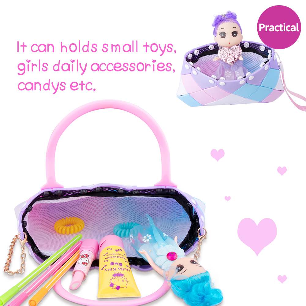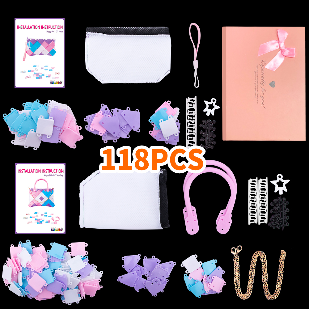 Amy Lynn 2019-11-08 12:19:24DIY Tote BagLittle plastic carrying case with all the parts needed to make your own colorful handmade bag. In the package you get a bunch of different colored links that fit together along with 2 hand straps, a pink chain, button/button nuts, star button tool, inner pocket and spare parts pack. Comes with directions with pictures that tell you how to make a standard bag. You can also make a different bag than the standard version. As far as quality all the parts are good. Links of the bag are made of a rubbery flexible material and are easy to piece together. Straps of the purse are also good. Comes with a little card for a mystery gift. Love everything about this little kit. Good for creativity, bonding time, self-expression. It's a well put together kit and a thoughtful product. -